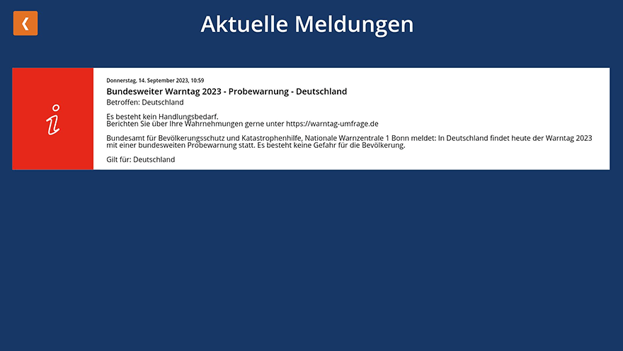 The Katwarn connection to kiosk terminals was also successfully tested during the nationwide trial warning day 2023.